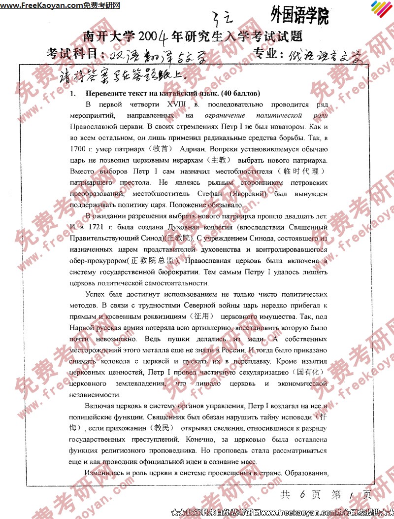 专业课考研经验 本站小编 FreeKaoyan 2018-01-23南开大学2004年考研真题-翻译