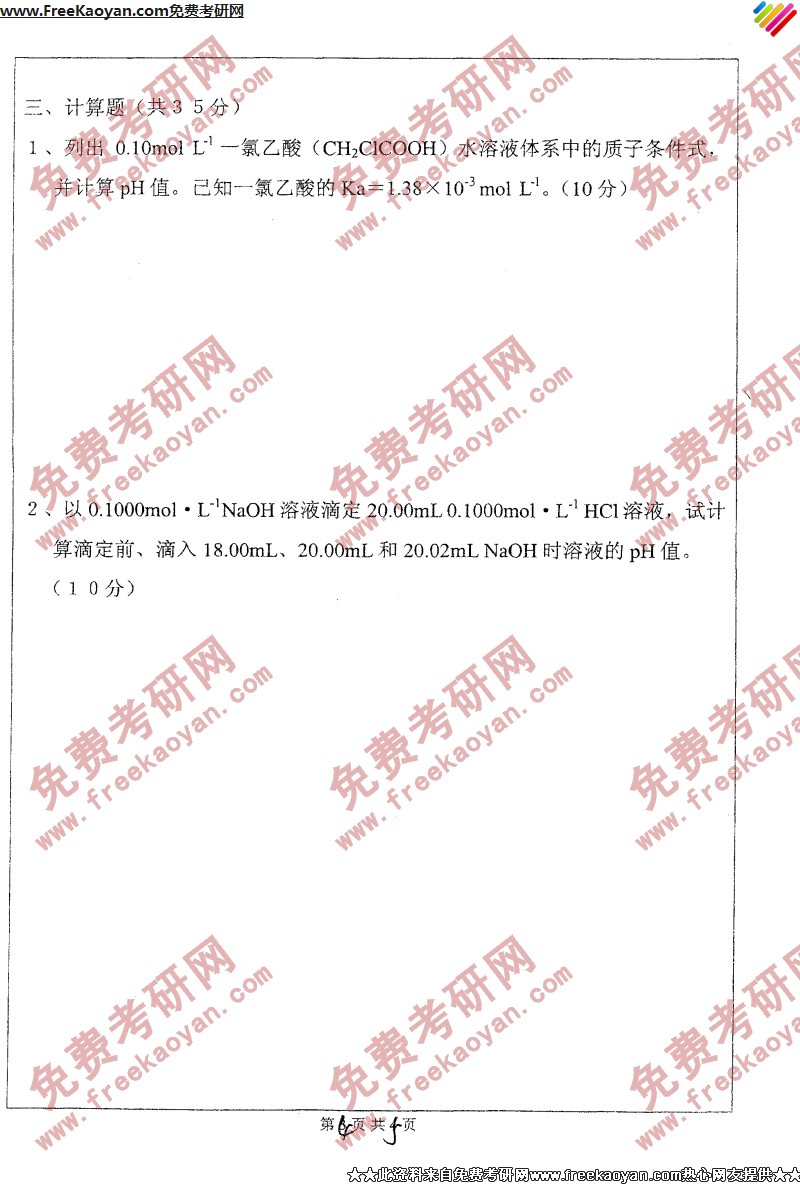 相关话题/考研真题 南开大学 环境 分析化学 化学