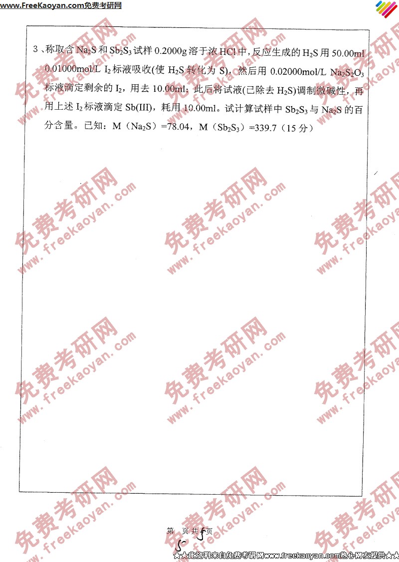 相关话题/考研真题 南开大学 环境 分析化学 化学