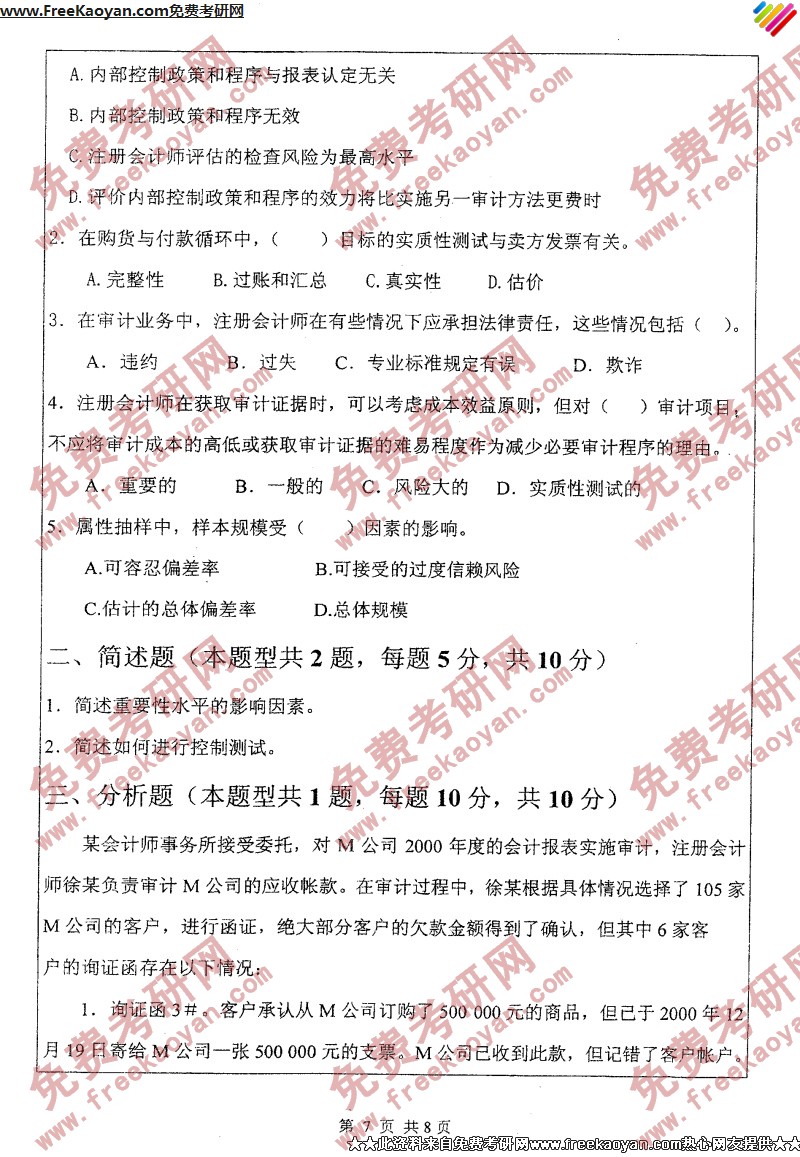 专业课考研经验 本站小编 FreeKaoyan 2018-01-23南开大学2004年考研真题-管理学信息系统