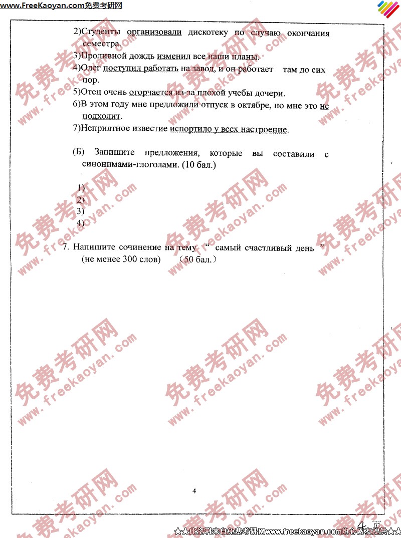 南开大学2004年考研真题-基础俄语(4)