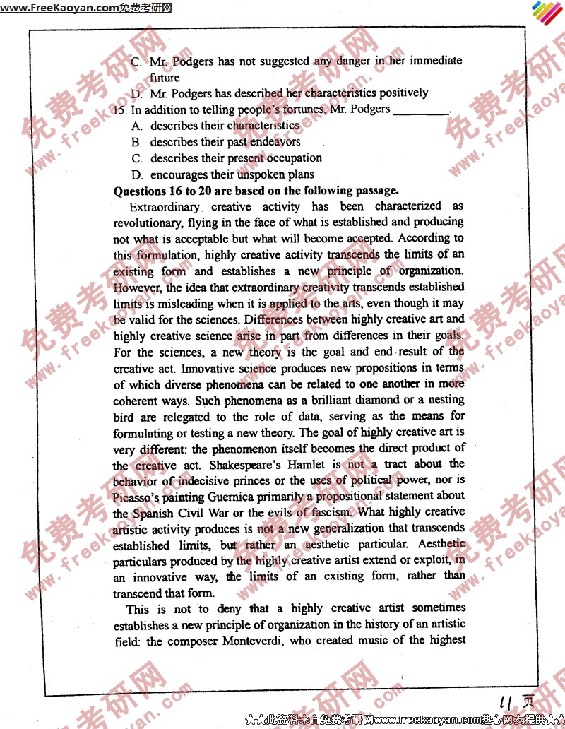 南开大学2004年考研真题-基础英语(11)