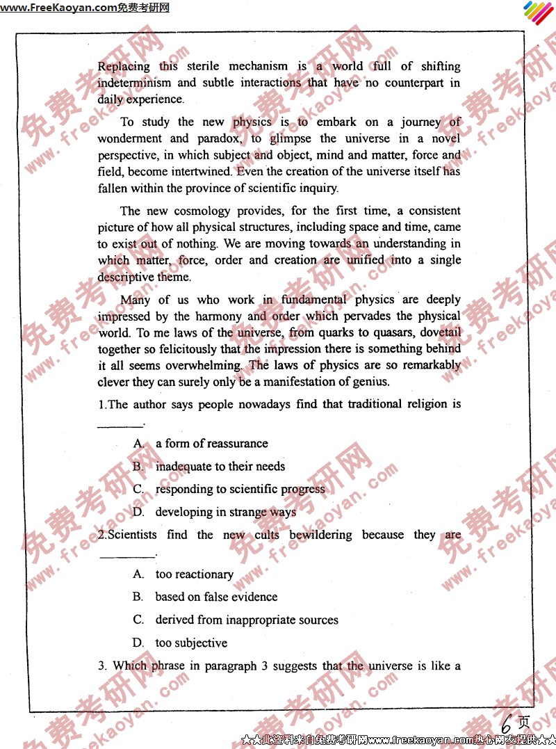 专业课考研经验 本站小编 FreeKaoyan 2018-01-23南开大学2004年考研真题-汉语翻译与文学