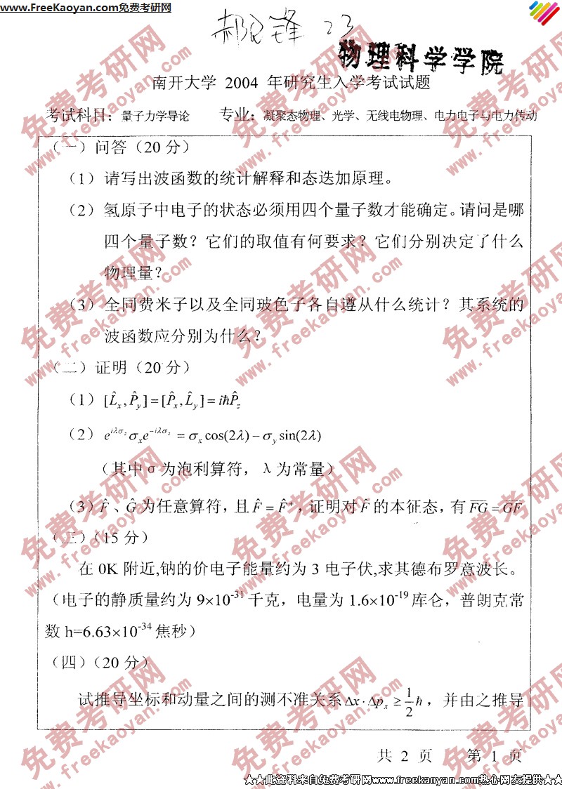 专业课考研经验 本站小编 FreeKaoyan 2018-01-23南开大学2004年考研真题-计算机应用(含程序设计、数据库系统)