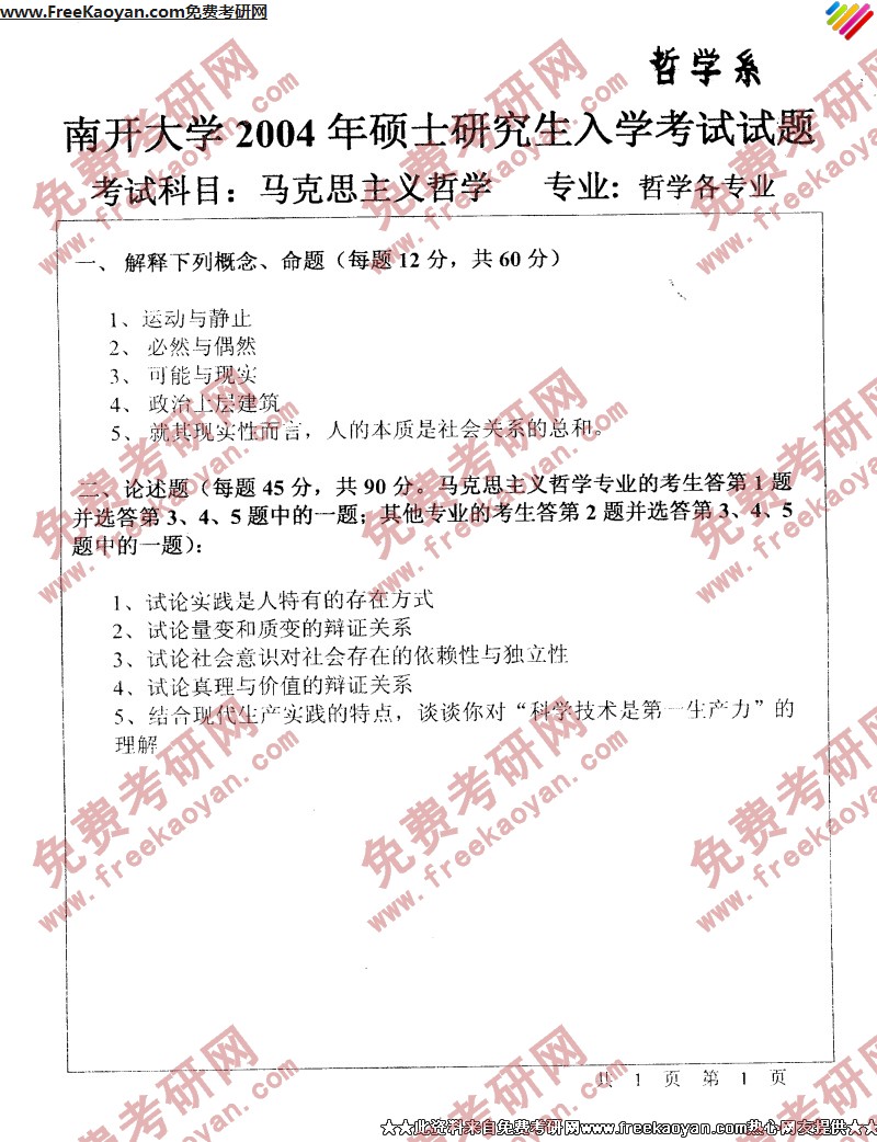 专业课考研经验 本站小编 FreeKaoyan 2018-01-23南开大学2004年考研真题-科学技术史
