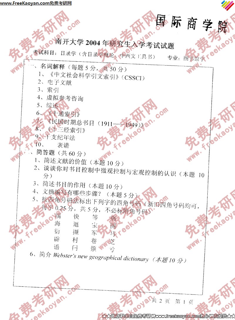 相关话题/考研真题 南开大学 目录学 西文 工具书