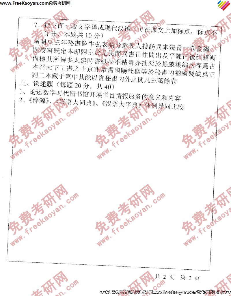 南开大学2004年考研真题-目录学(含目录学概论、中西文工具书)(2)