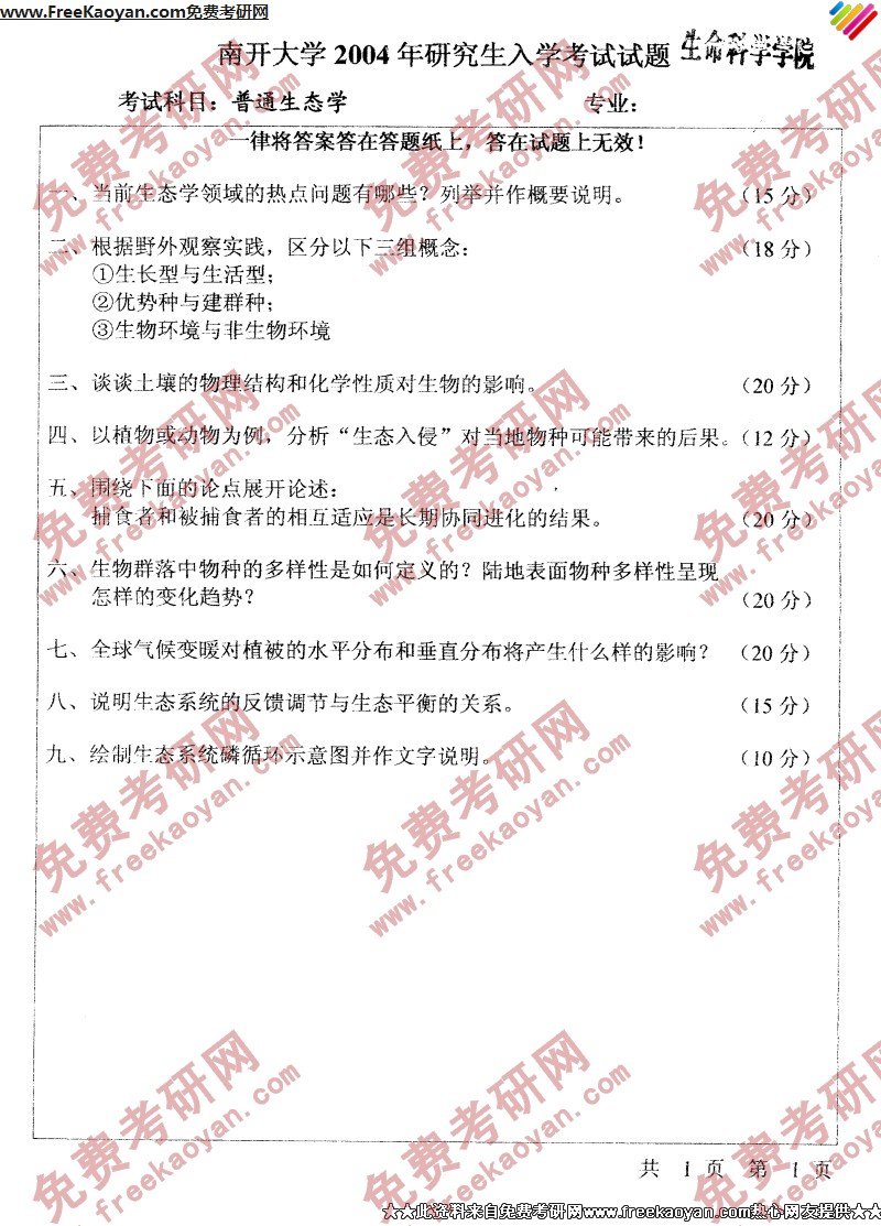 专业课考研经验 本站小编 FreeKaoyan 2018-01-23南开大学2004年考研真题-基础英语