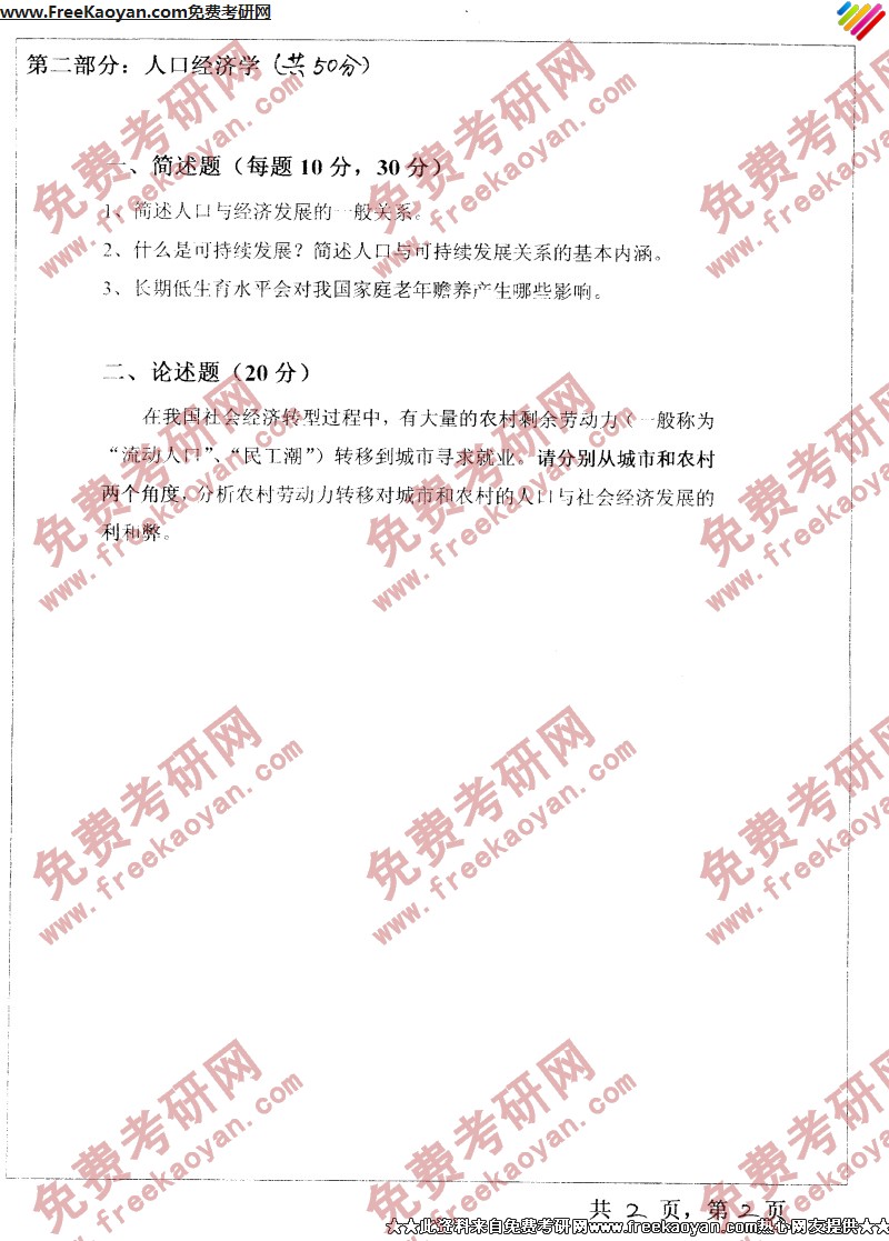 相关话题/考研真题 南开大学 人口 环境经济学 资源