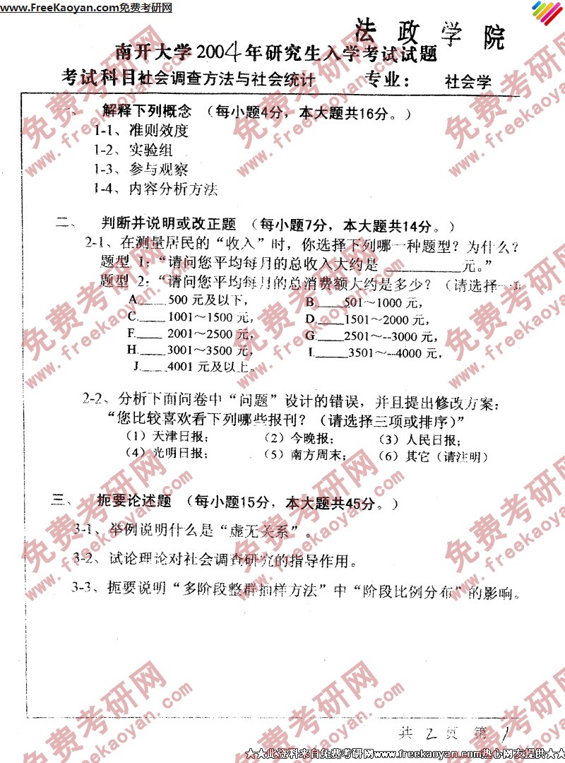 相关话题/南开大学 考研真题 社会 统计 社会调查