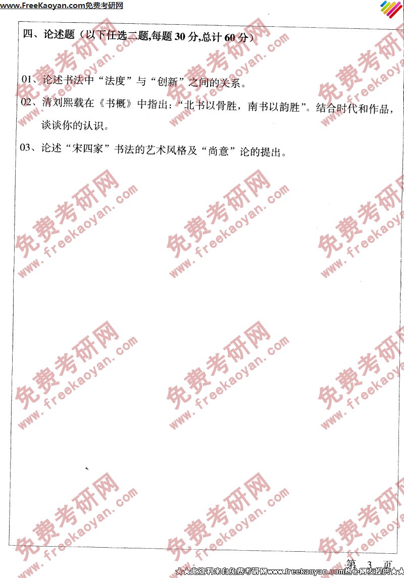 专业课考研经验 本站小编 FreeKaoyan 2018-01-23南开大学2004年考研真题-书法技术
