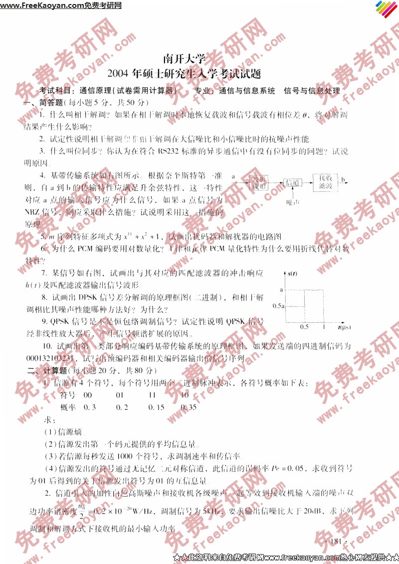 专业课考研经验 本站小编 FreeKaoyan 2018-01-23南开大学2004年考研真题-水污染控制工程