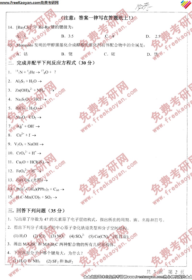 相关话题/南开大学 考研真题 无机化学