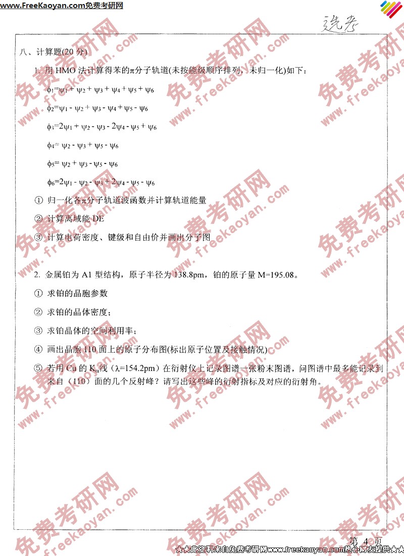 专业课考研经验 本站小编 FreeKaoyan 2018-01-23南开大学2004年考研真题-无机化学(非无机化学专业)
