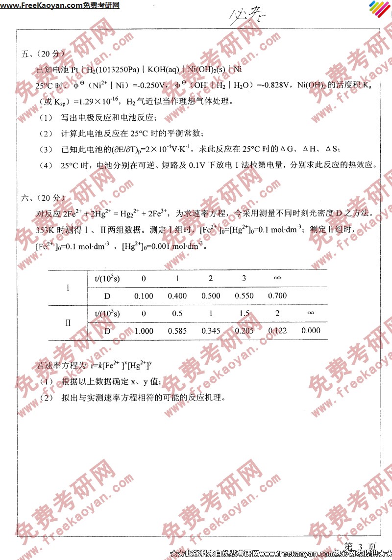 南开大学2004年考研真题-物理化学(物理化学专业)(3)