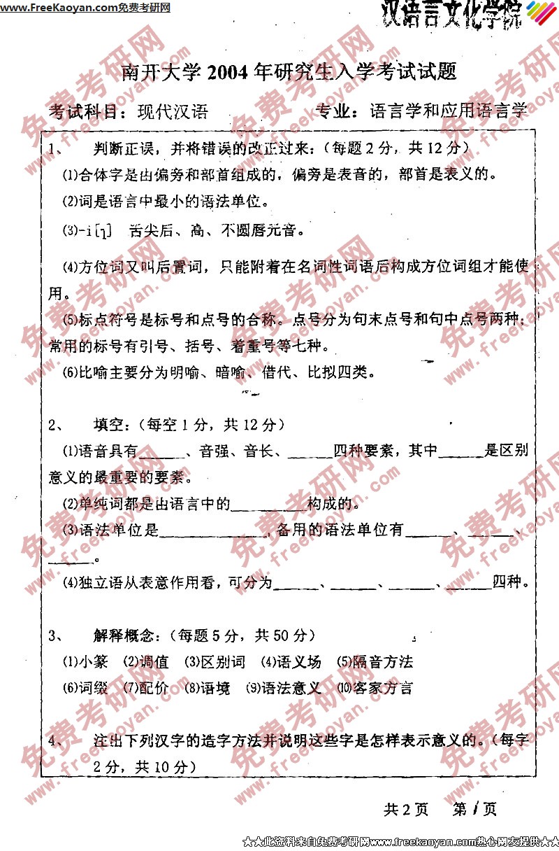 专业课考研经验 本站小编 FreeKaoyan 2018-01-23南开大学2004年考研真题-书法史论