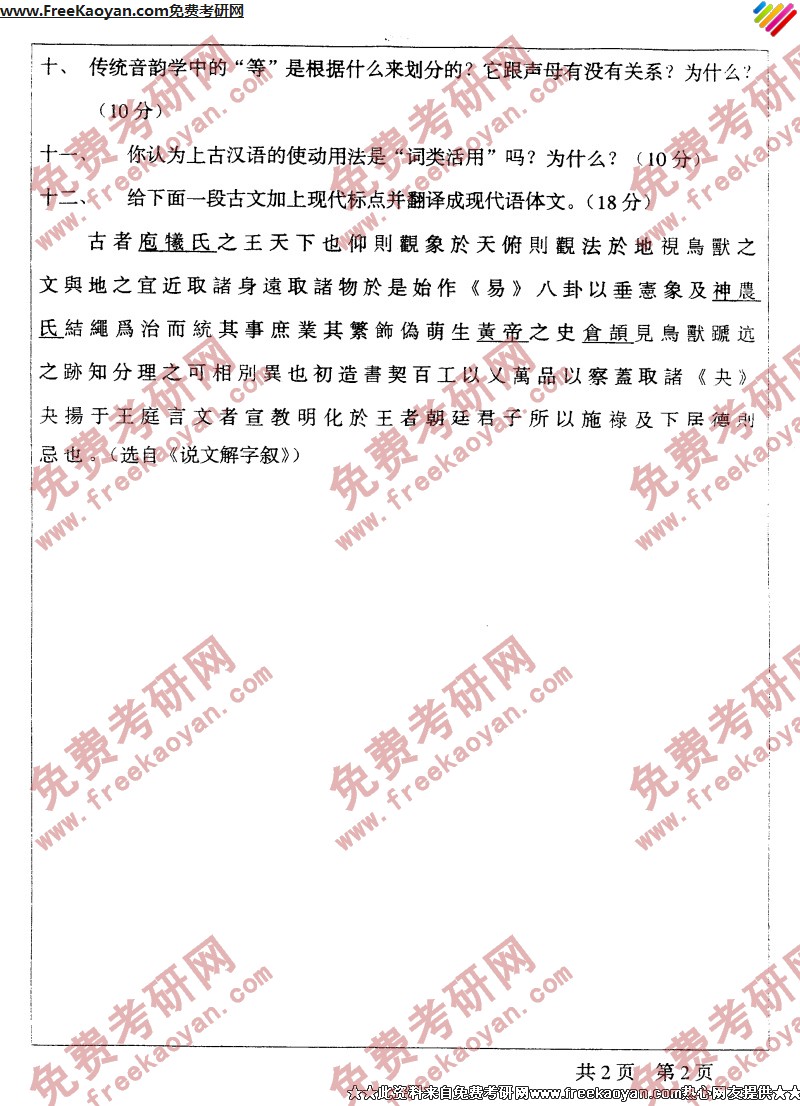 相关话题/考研真题 南开大学 古代汉语 现代汉语