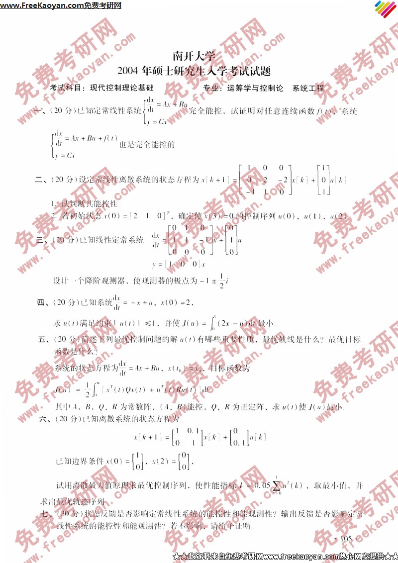 专业课考研经验 本站小编 FreeKaoyan 2018-01-23南开大学2004年考研真题-通信原理