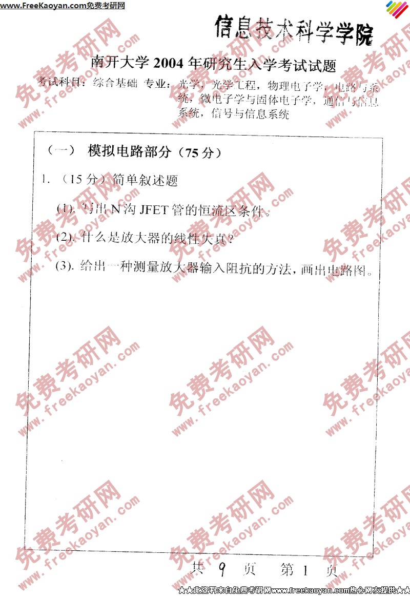 南开大学2004年考研真题-信息科学技术学院综合基础