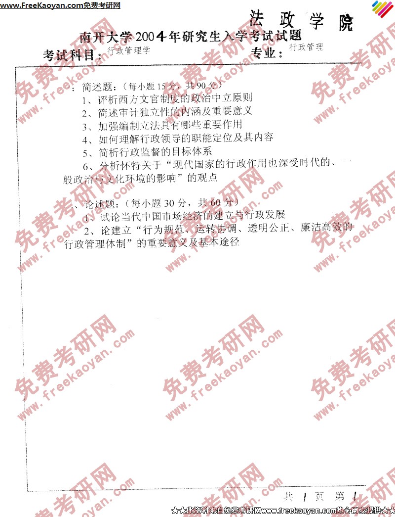 专业课考研经验 本站小编 FreeKaoyan 2018-01-23南开大学2004年考研真题-宪法学、行政法与行政诉讼法