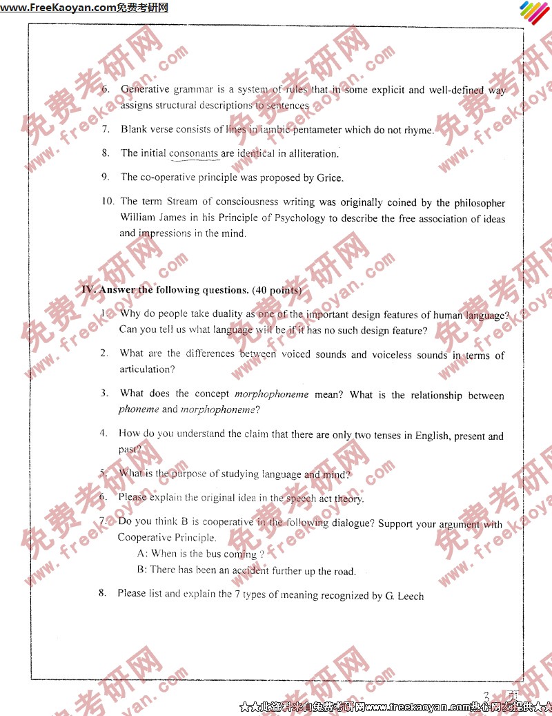 相关话题/南开大学 考研真题 语言学