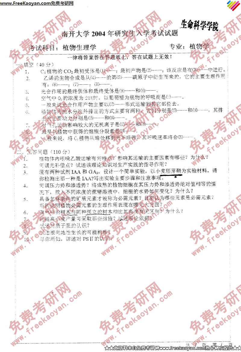 专业课考研经验 本站小编 FreeKaoyan 2018-01-23南开大学2004年考研真题-有机化学