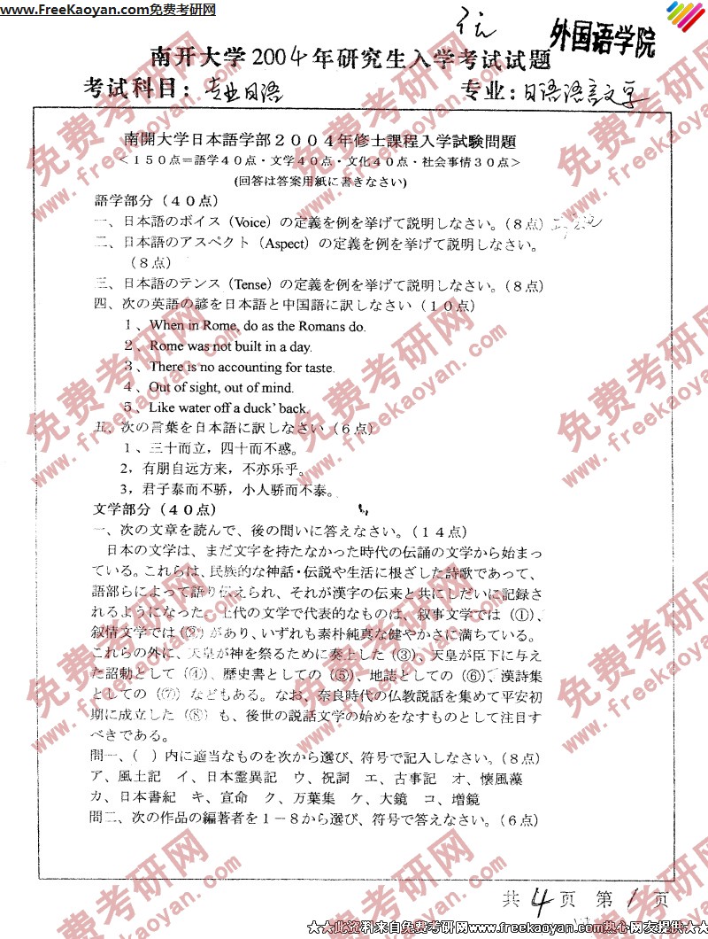 专业课考研经验 本站小编 FreeKaoyan 2018-01-23南开大学2004年考研真题-语言学
