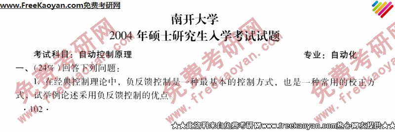 南开大学2004年考研真题-自动控制原理(自动化专业)