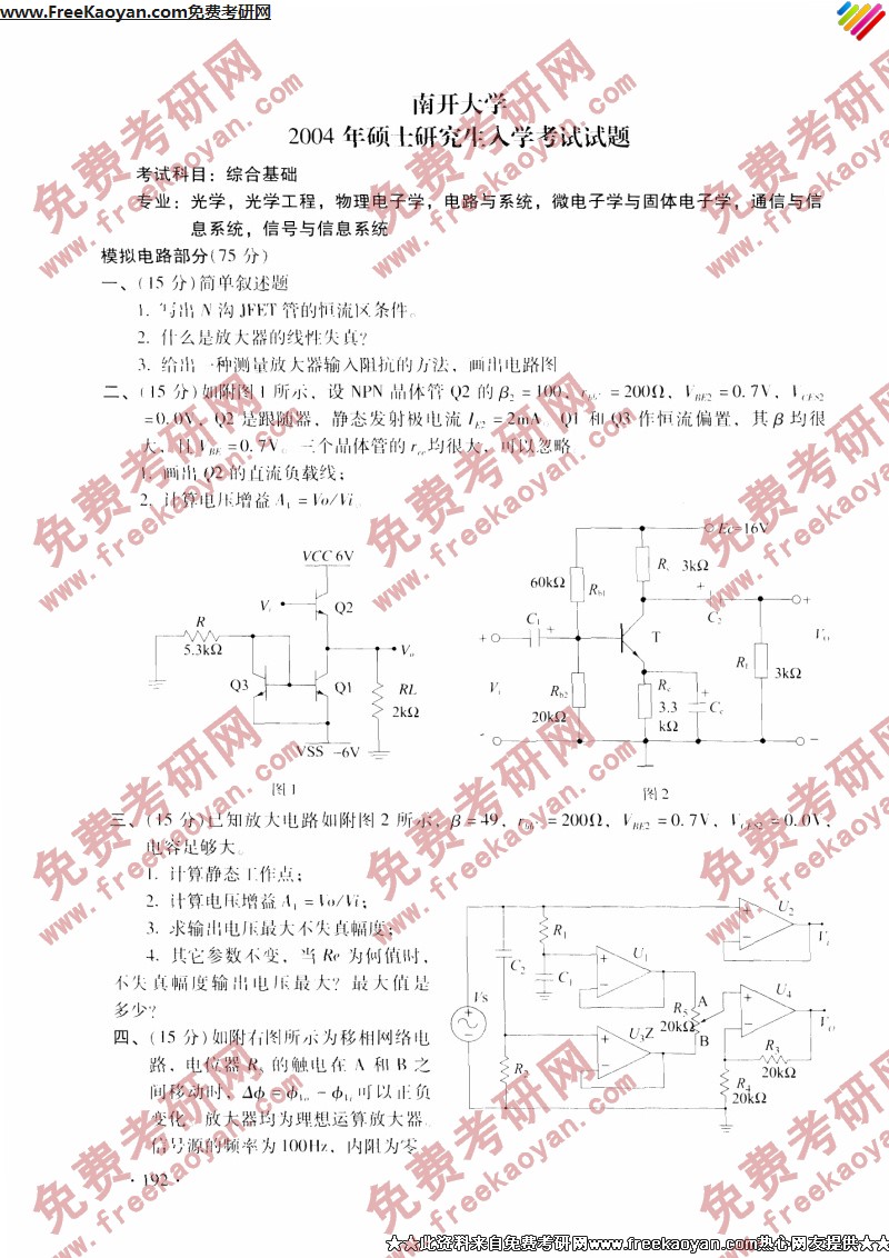 南开大学2004年考研真题-综合基础(光学、光学工程等)