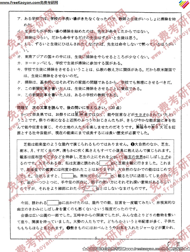 南开大学2004年考研真题-基础日语(5)