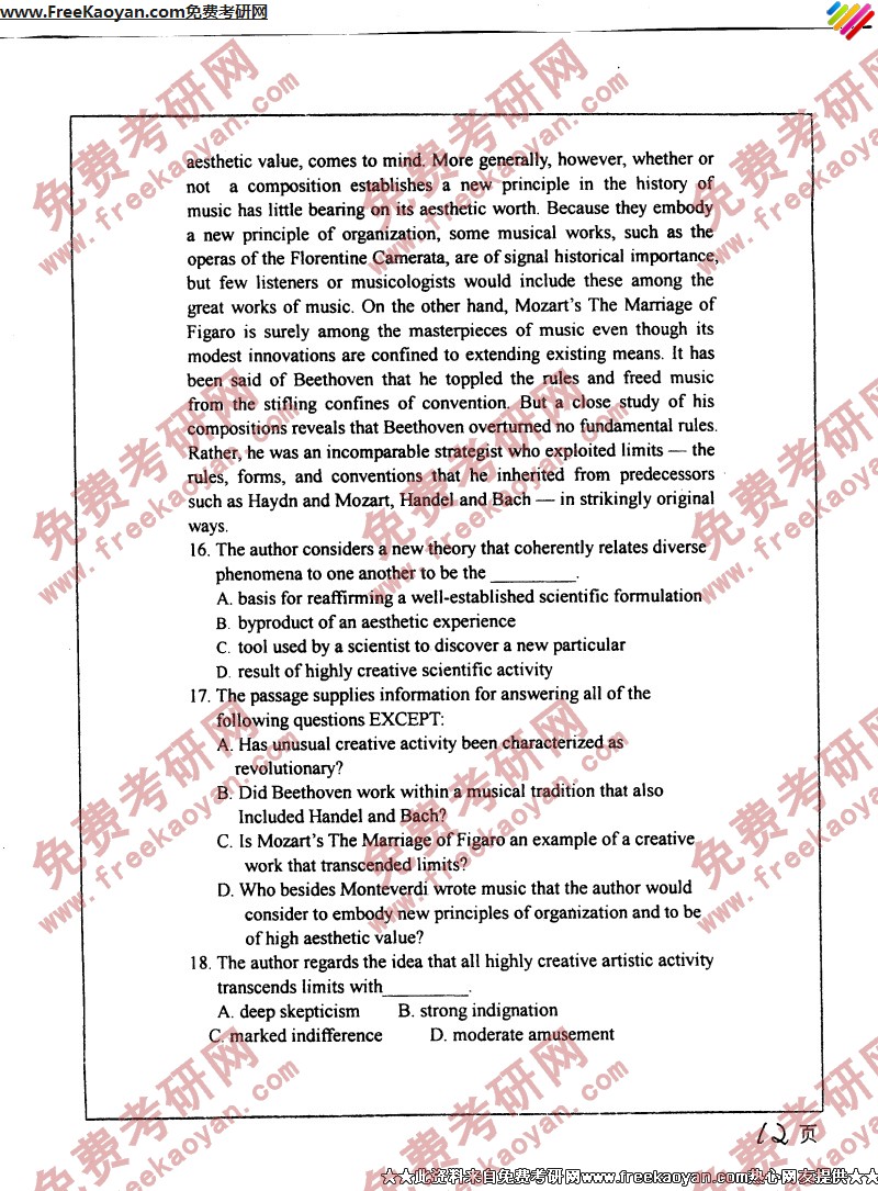 专业课考研经验 本站小编 FreeKaoyan 2018-01-23南开大学2004年考研真题-中西美学史
