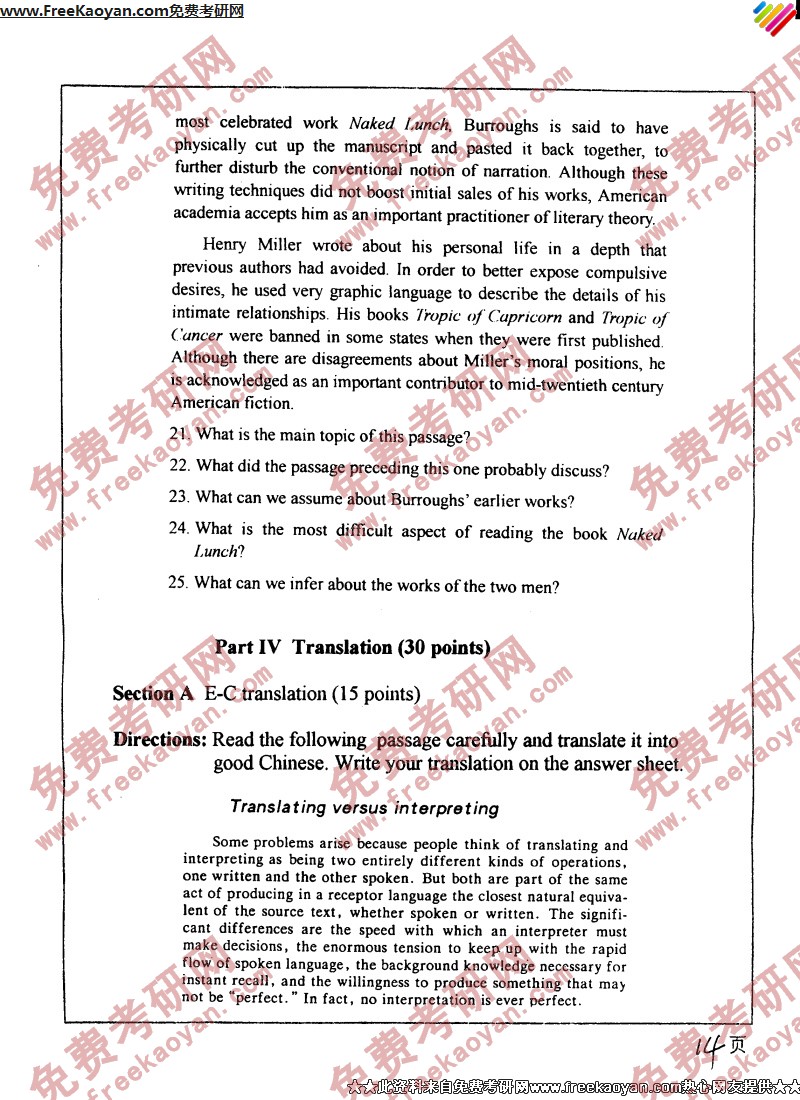 南开大学2004年考研真题-基础英语(14)