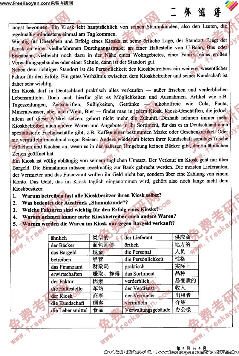 专业课考研经验 本站小编 FreeKaoyan 2018-01-23南开大学2004年考研真题-专业日语