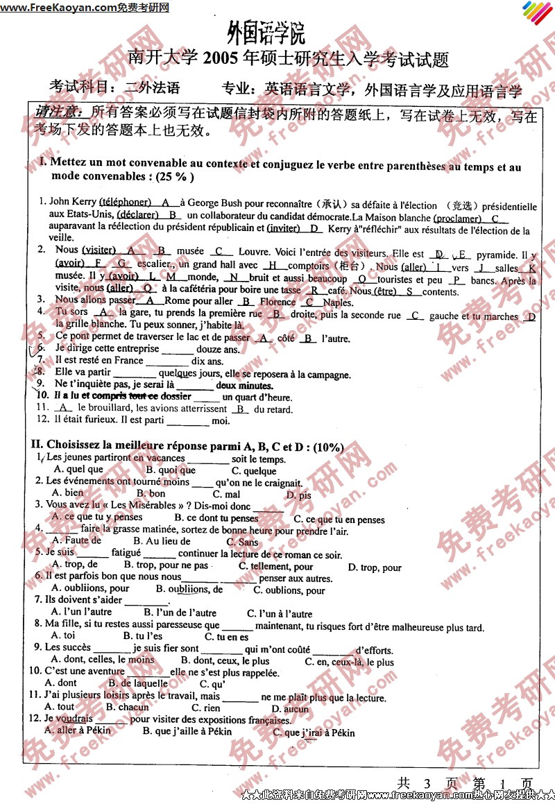 专业课考研经验 本站小编 FreeKaoyan 2018-01-23南开大学2004年考研真题-基础英语