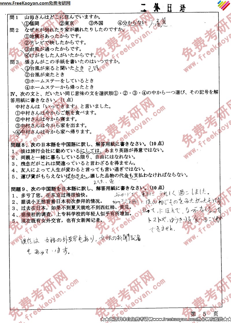 专业课考研经验 本站小编 FreeKaoyan 2018-01-23南开大学2004年考研真题-基础日语