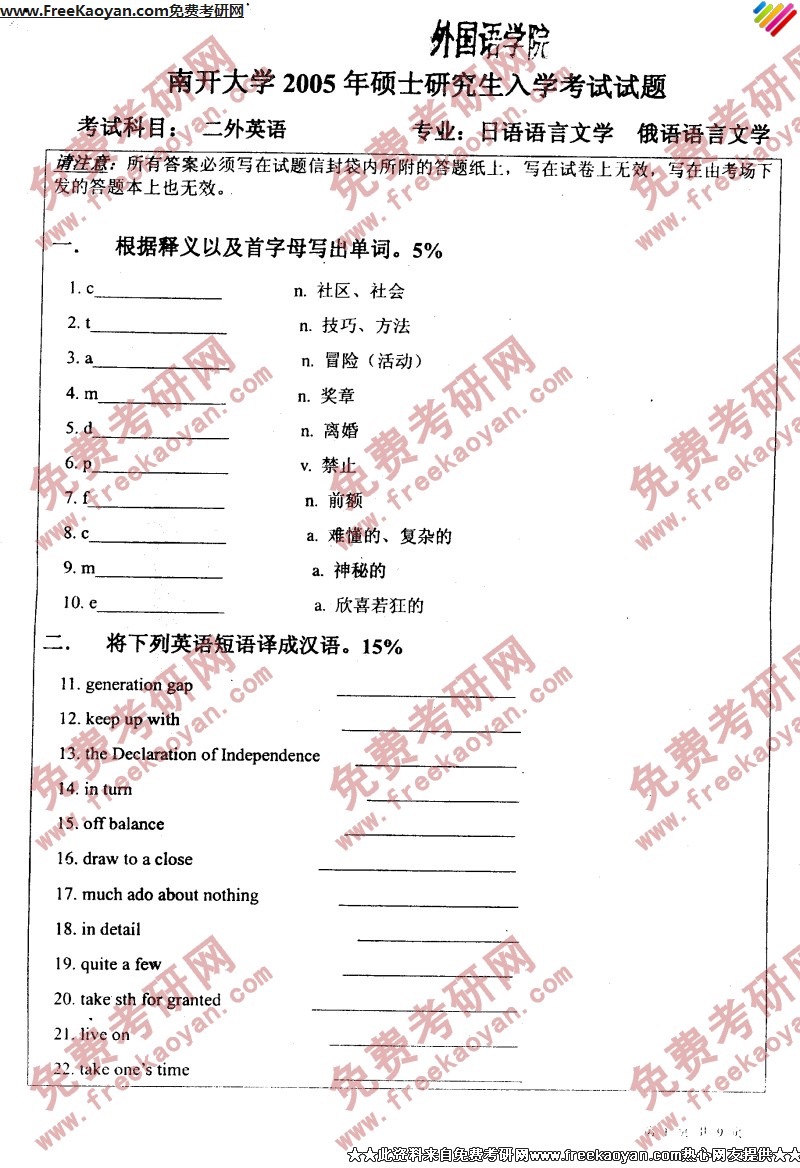 南开大学2005年考研真题-二外英语