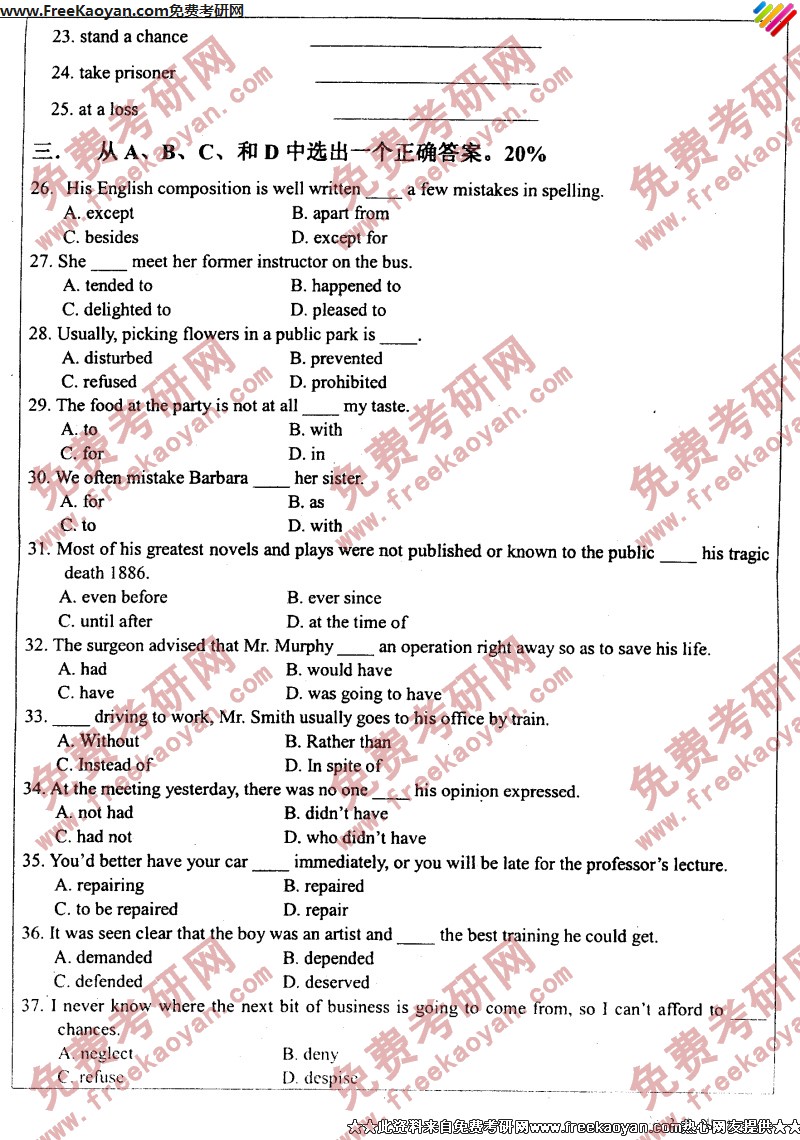 专业课考研经验 本站小编 FreeKaoyan 2018-01-23南开大学2004年考研真题-基础英语