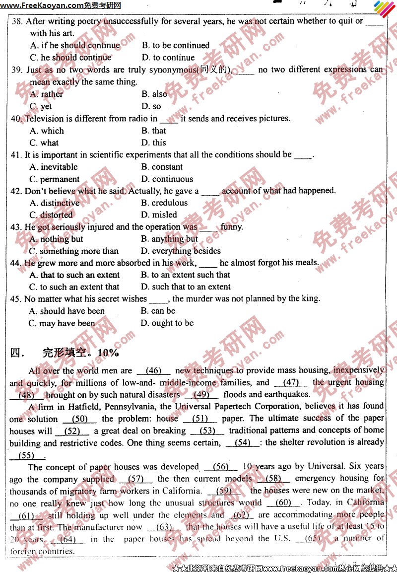 专业课考研经验 本站小编 FreeKaoyan 2018-01-23南开大学2004年考研真题-基础英语