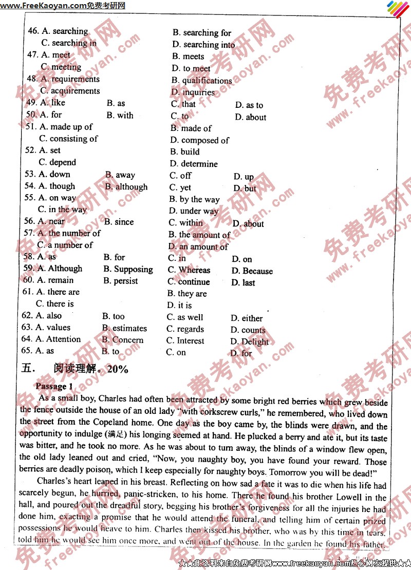 专业课考研经验 本站小编 FreeKaoyan 2018-01-23南开大学2004年考研真题-基础英语