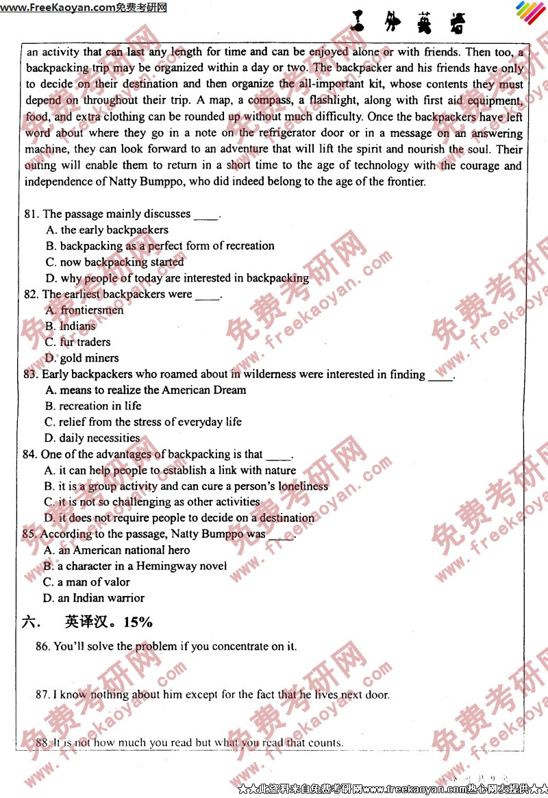 专业课考研经验 本站小编 FreeKaoyan 2018-01-23南开大学2004年考研真题-基础英语