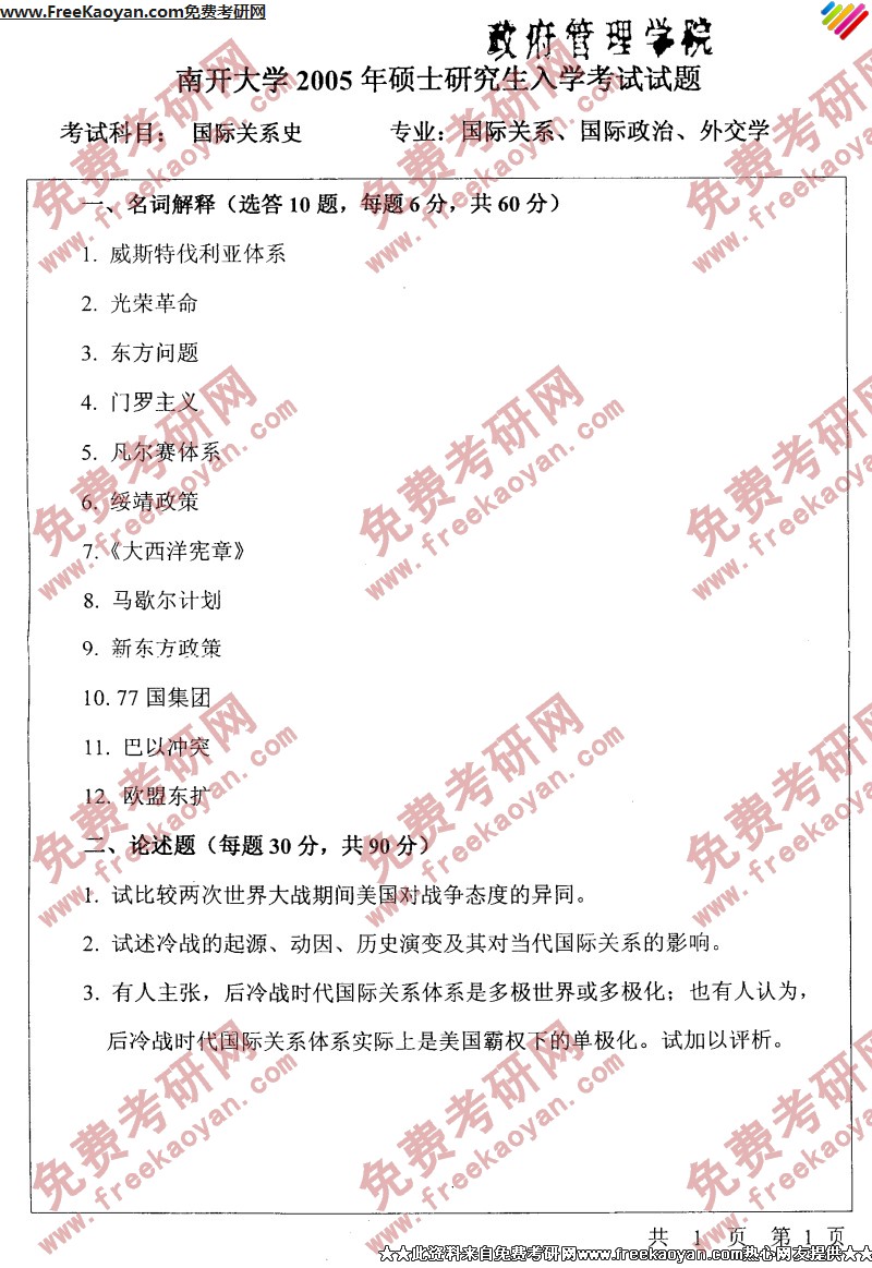 相关话题/南开大学 考研真题 国际关系史