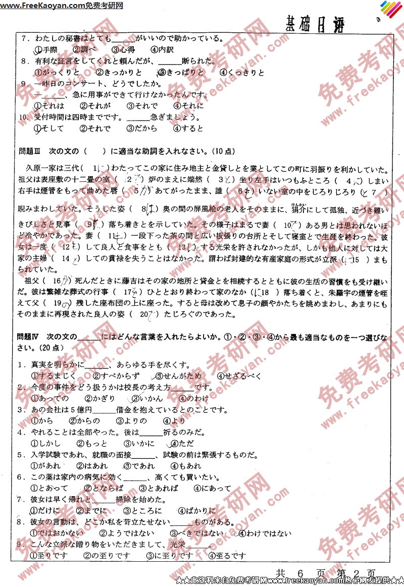 专业课考研经验 本站小编 FreeKaoyan 2018-01-23南开大学2005年考研真题-二外日语