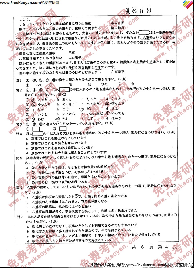 专业课考研经验 本站小编 FreeKaoyan 2018-01-23南开大学2005年考研真题-二外日语