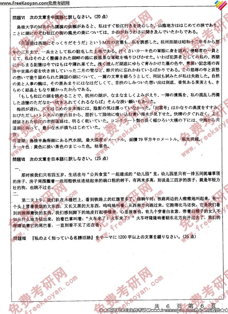 专业课考研经验 本站小编 FreeKaoyan 2018-01-23南开大学2005年考研真题-二外日语