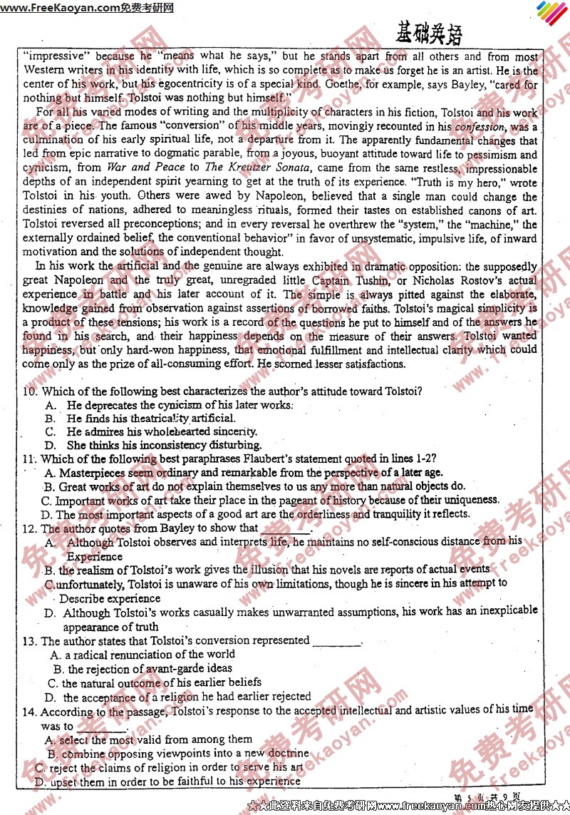 专业课考研经验 本站小编 FreeKaoyan 2018-01-23南开大学2004年考研真题-基础英语