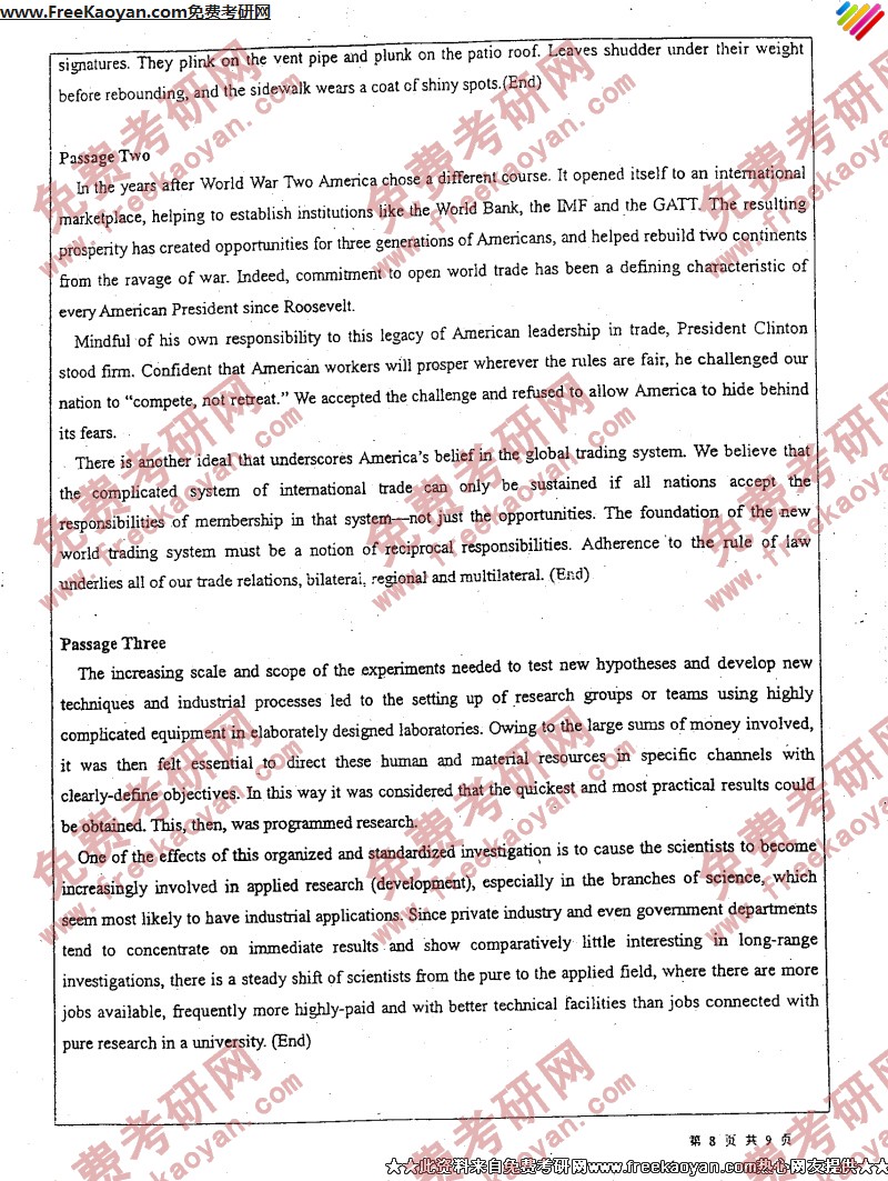 专业课考研经验 本站小编 FreeKaoyan 2018-01-23南开大学2004年考研真题-基础英语