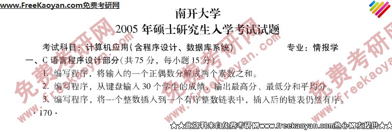专业课考研经验 本站小编 FreeKaoyan 2018-01-23南开大学2005年考研真题-C语言与数据结构