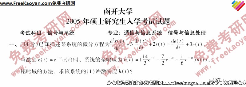 专业课考研经验 本站小编 FreeKaoyan 2018-01-23南开大学2005年考研真题-高等数学(光学)
