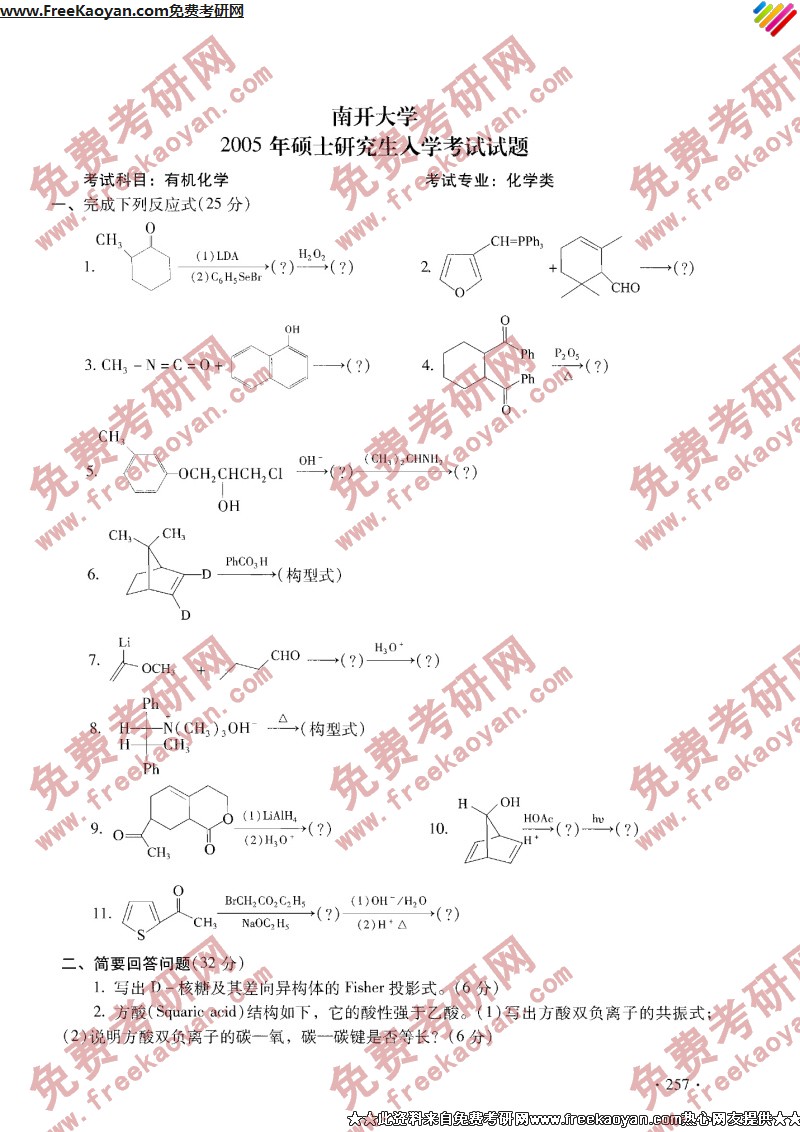 专业课考研经验 本站小编 FreeKaoyan 2018-01-23南开大学2005年考研真题-物理化学
