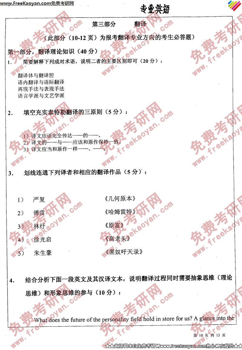 专业课考研经验 本站小编 FreeKaoyan 2018-01-23南开大学2005年考研真题-基础英语